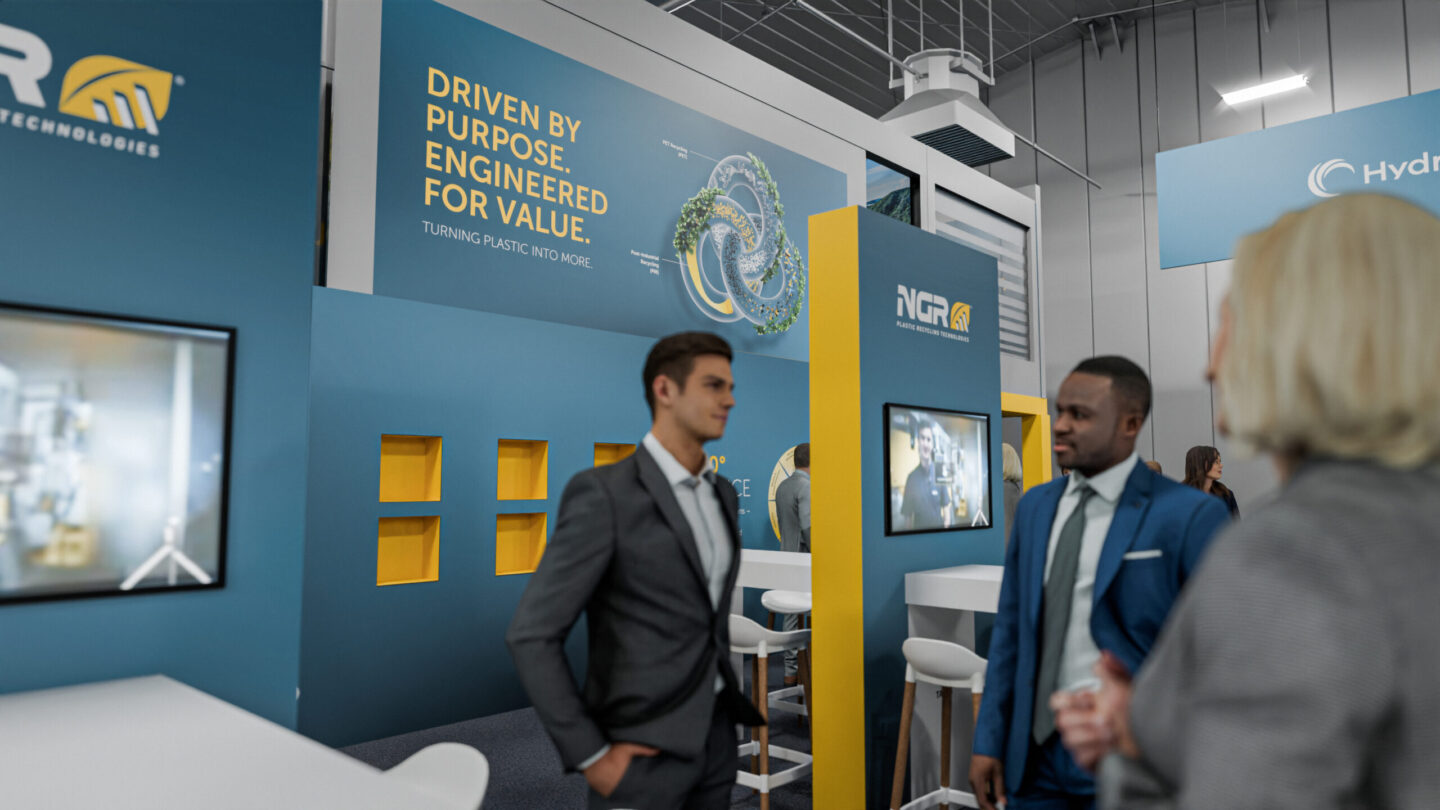 Für die K 2025 sollte das Key Visual von Next Generation Recycling Machines nicht nur auffallen, sondern eine Geschichte erzählen – eine Geschichte von Innovation, Nachhaltigkeit und Mehrwert. Wir entwickelten eine Leitkampagne mit einem eigenen Key Visual, das den bestehenden Slogan „driven by purpose. engineered for value.“ aufgreift und mit dem Zusatz „turning plastic into more“ verbindet – kurz, verständlich und kraftvoll. Gemeinsam mit NGR entwickelten wir ein Messekonzept, das diese Werte sichtbar, erlebbar und spürbar macht.