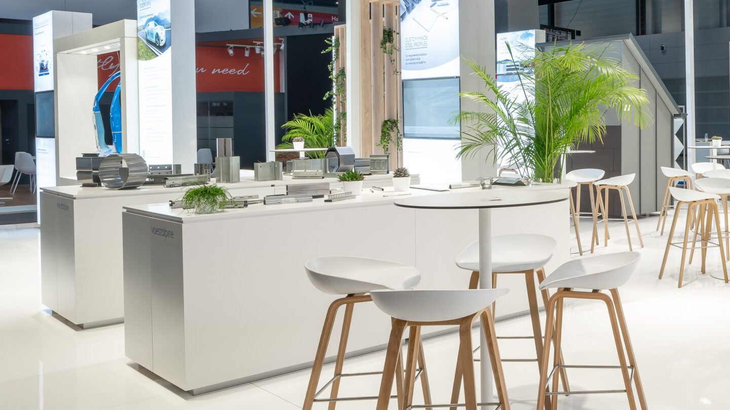 Ergebnis: Ein moderner, dynamischer Messeauftritt, der die Marke voestalpine sichtbar stärkt und ihre Zukunftspläne klar in Szene setzt.